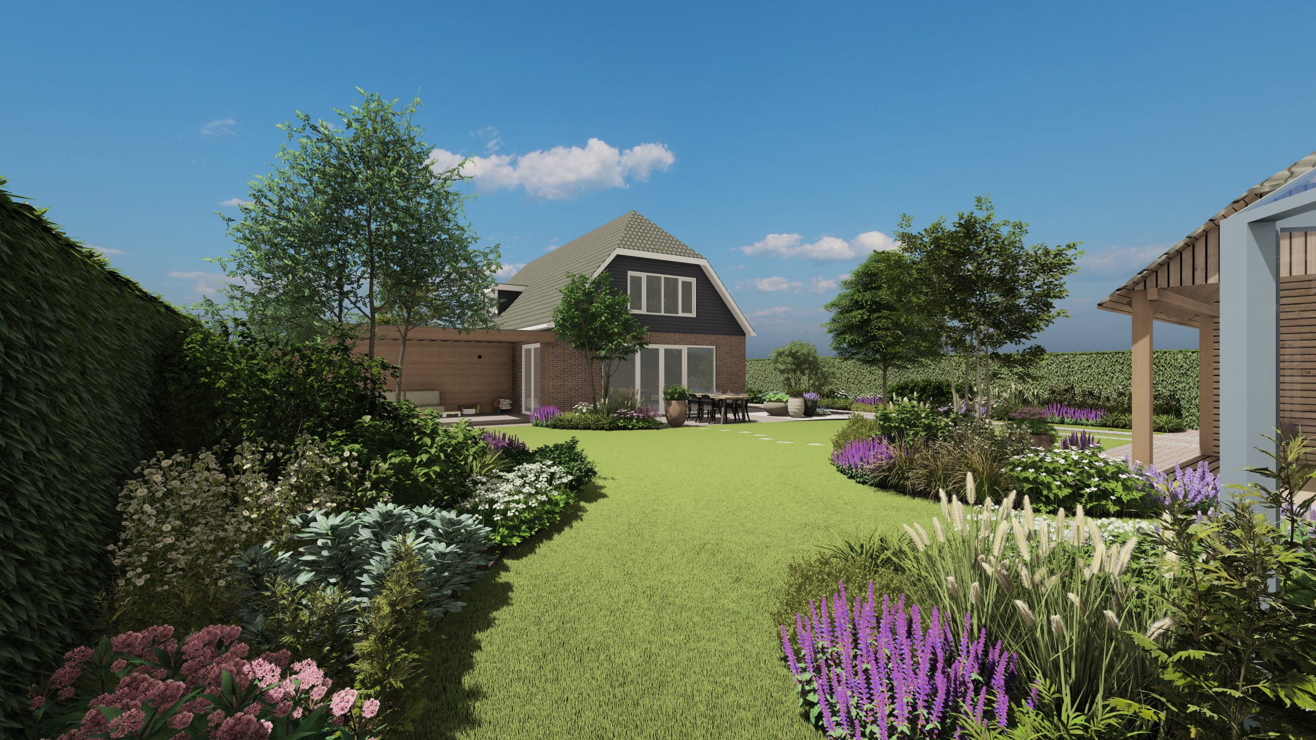 Vervolgens wordt in fase twee toegewerkt naar een helder en realistisch tuinontwerp, inclusief 3D-visualisatie en materiaaladvies. Na de presentatie van het voorlopig ontwerp is er ruimte voor aanpassingen voordat het definitief ontwerp wordt opgesteld.